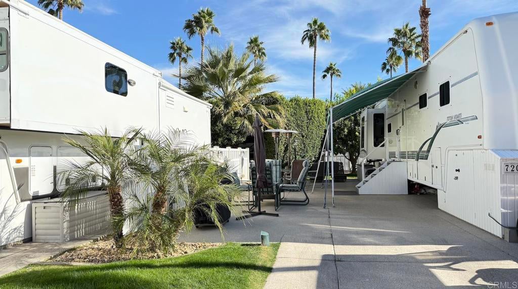 Lot 720, Fantastic westerly Mountain Views! Cement has the speckled surface with patio privacy and fencing. Very close to El Saguaro clubhouse so you’re minutes from all activities. Included is a Club Car golf cart and patio furniture. RV will be leaving the resort. Outdoor Resort Palm Springs (ORPS) is a Guard Gated 5-Star RV Resort Community offering an active and luxurious lifestyle featuring golf (27 holes), tennis, pickleball, swimming and more! Two clubhouses, fitness center, beauty solan, La Roma Restaurant on campus, dog park and more!