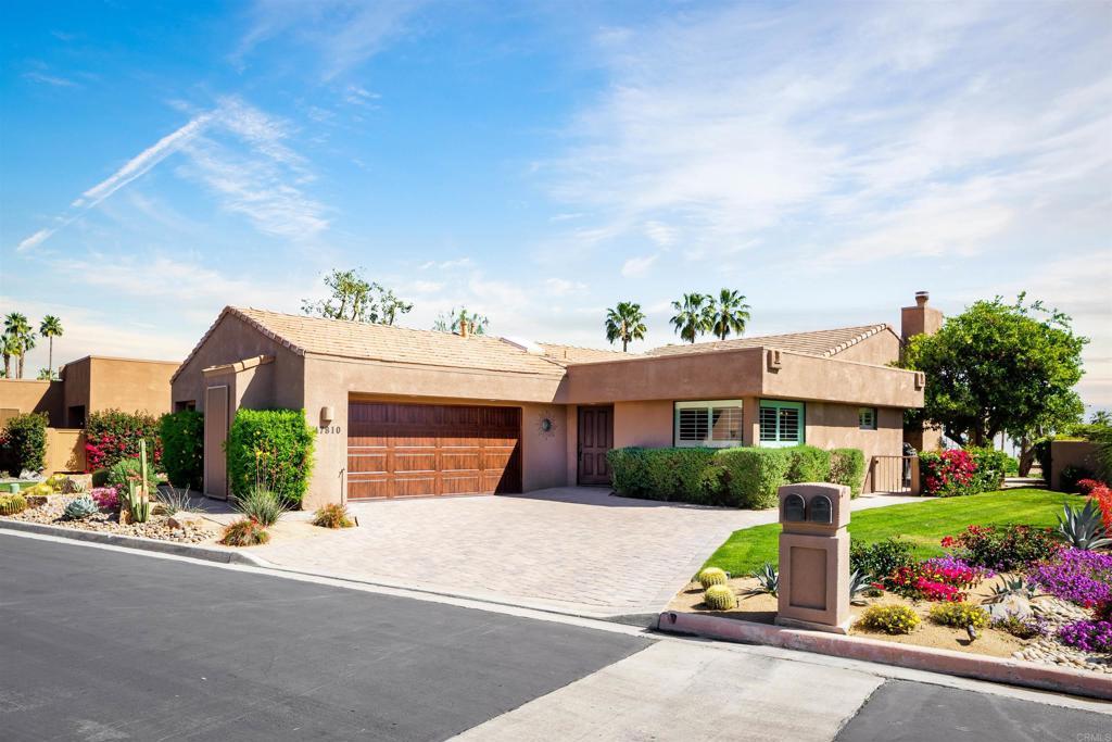 Nestled within the serene landscapes of Palm Desert, California, rests 47810 Quercus Lane, a well designed free standing condominium within the prestigious gated community of Ironwood Country Club. Offering a refined lifestyle amidst the desert's natural beauty, this remodeled residence embodies sophistication and tranquility. Approaching the property, you're greeted by waterwise landscaping and a paver driveway, setting the stage for the elegance that awaits within. This single-level home's exterior is Mediterranean-inspired architecture, seamlessly blending stucco exteriors and clay-tiled roofs with the surrounding environment. Step inside to discover a welcoming foyer that guides you to the heart of the home, a spacious living area adorned with a fireplace and framed by captivating views. Bathed in natural light pouring through oversized windows, this inviting space radiates warmth and sophistication, perfect for both casual gatherings and formal entertaining. The gourmet kitchen, boasting high end appliances, custom cabinetry, and a center island with granite countertops and bar seating, awaits you. Whether hosting intimate dinners or preparing meals for loved ones, this kitchen is designed to inspire your inner chef. The primary bedroom has a walk in closet and remodeled bathroom with dual sinks. Additionally, there are two additional bedrooms, one with a full bath. The third bedroom, ideal for an office or den. Then the second and third bedrooms both have sliding glass doors to an enclosed patio. Don't miss the convenience of the half bath just off the front hallway or the bonus golf cart garage door located to the left, front side of the house. Residents of 47810 Quercus Lane enjoy easy access to Palm Desert's premier amenities, including world-class golf courses, fine dining, shopping, and cultural attractions. Whether seeking a peaceful sanctuary or an entertainer's haven, this exquisite property epitomizes the essence of desert living.