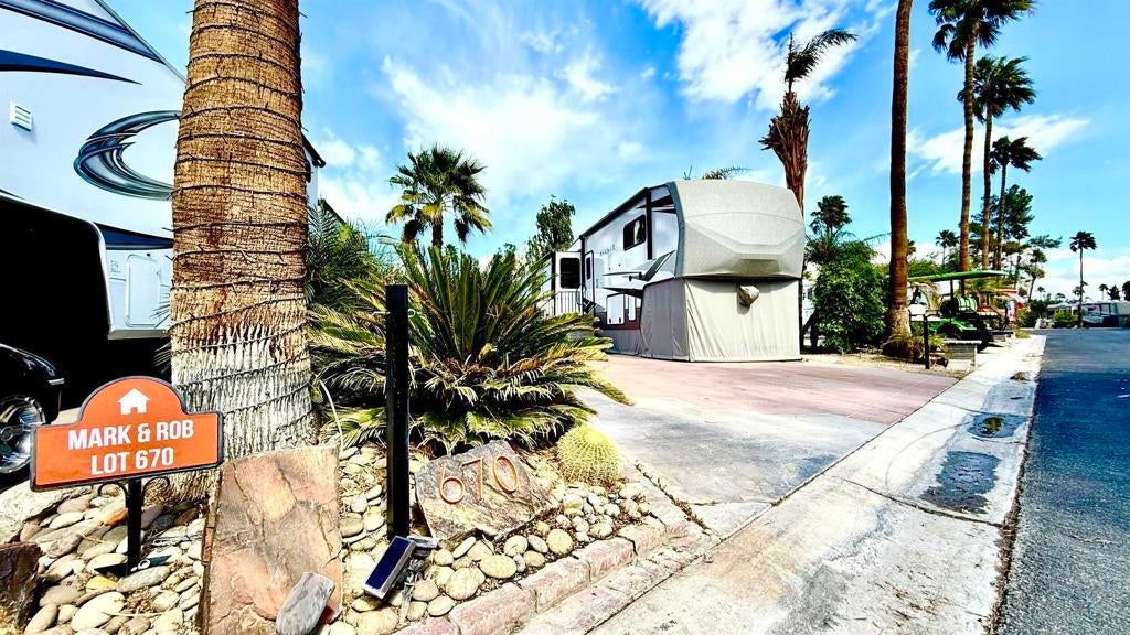 Lot 670 - Lot & RV Package Sale: Adjacent to Satellite D and all the amenities that you need including Jacuzzi and laundry facilities. You’re on a very quiet street with an original lot. Nicely landscaped and just a few minutes walk to all the activities at Outdoor Resorts. Outdoor Resort Palm Springs (ORPS) is a Guard Gated 5-Star RV Resort Community offering an active and luxurious lifestyle featuring golf (27 holes), tennis, pickleball, swimming and more! Two clubhouses, fitness center, beauty solan, La Roma Restaurant on campus, dog park and more!