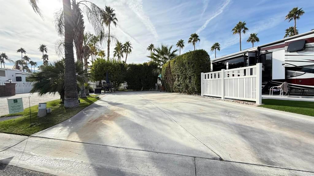 Lot 743, Located on the west side of Golf Course Drive, this lot is surrounded in the rear and the service side with 12 foot hedges and a blooming grapefruit tree. A short walk to the El Seguro clubhouse and starter shack. A privacy screen is on your patio side, allowing for You and your guest to entertain without interruption. Outdoor Resort Palm Springs (ORPS) is a Guard Gated 5-Star RV Resort Community offering an active and luxurious lifestyle featuring golf (27 holes), tennis, pickleball, swimming and more! Two clubhouses, fitness center, beauty solan, La Roma Restaurant on campus, dog park and more!