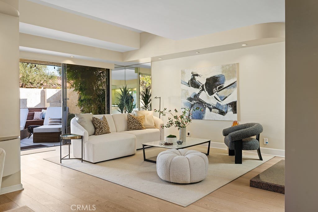 This beautifully designed single-story condo offers the perfect blend of architectural charm, designer finishes, and breathtaking mountain views. A rare find, this home includes an extended double garage, providing ample storage and convenience. Step inside to discover engineered wood floors throughout the kitchen and living spaces, complemented by elegant wool area rugs. The light-filled living room boasts soaring ceilings, a gas fireplace with granite surround, an adjacent wet bar, and direct access to a spacious wrap-around patio with a sturdy pergola—perfect for entertaining. A separate den/media room features a skylight with a motorized shade and access to a third bathroom. The luxurious owner’s suite showcases vaulted wood ceilings, a stylish wood accent wall, multiple closets, and a spa-like private bath with dual sinks, a walk-in shower, and a soaking tub. The guest suite also includes a private en-suite bath with a walk-in shower. Enjoy resort-style living with community pools, a spa, tennis courts, and a clubhouse. Land Lease through 2068. $4453 Annually Conveniently located just five minutes from the airport and near downtown, shopping, fitness centers, and medical facilities.