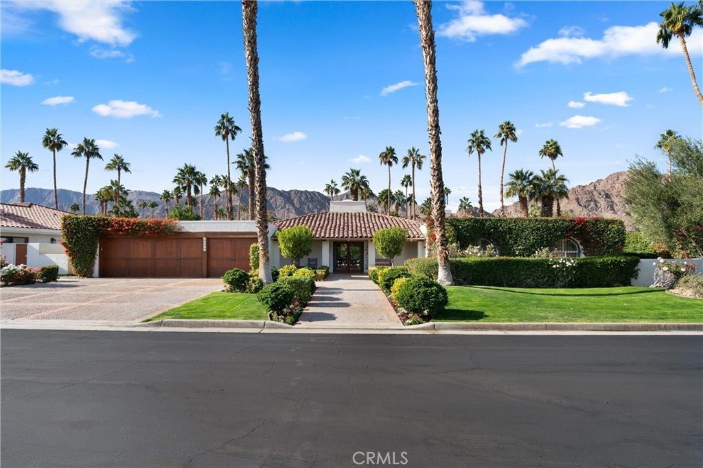 Nestled in one of La Quinta’s most desirable neighborhoods, this stunning and upgraded home combines charm with sophistication and comfort. Situated on a desirable single-loaded street with golf course views from the front, this home offers breathtaking mountain views and unparalleled privacy, with three private courtyards that provide serene outdoor spaces perfect for relaxation or entertaining. The expansive backyard is a true oasis, featuring a gorgeous resort-style pool and spa, framed by lush landscaping. A standout feature of this home is the private detached casita situated off the backyard by the pool. This charming guest house offers a luxurious retreat for visitors, complete with its own bathroom, offering both comfort and privacy. Inside, the home has been thoughtfully renovated to create an inviting, light-filled interior that blends modern luxury with classic desert charm. The open-concept design includes a spacious great room with vaulted ceilings, a remodeled gourmet kitchen equipped with high-end appliances, and a sophisticated dining area—perfect for hosting gatherings of all sizes. Other distinguishing features of this property include extensive luxurious remodeled primary bathroom as well as one of the guest bathrooms. The property features a separate AC unit for the casita and the main house has two newer AC units. Located in a 24 hour guard gated community near Old Town La Quinta, incredible restaurants, world class resorts, golf, tennis, hiking biking and walking trails, this home offers exceptional value with no Mello-Roos.