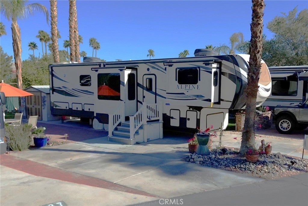 Highly sought after 55+ Seasonal Living "Desert Shadows RV Resort" RV Lot and Fabulous 5th Wheel Package Available Just over the Sport Courts! 3 Miles to Palm Springs Intl Airport! You Own Land! Grant Deed Lot with Water, Cable, Trash, and common area included in HOA! Amazing amenities! 2 large & well-maintained clubhouses plus 3 additional satellite clubhouses, An indoor pool with a large spa and sauna, An olympic-size lap pool, A total of 6 pools, 5 spas and 3 saunas, Sunken, lighted tennis courts, 8 Pickle-ball courts, An indoor shuffleboard pavilion, 16,000-square foot San Jacinto room with floating hardwood dance floor, and a professional stage, plus a large kitchen, A 3,000-square foot “Our Gang” party room and lounge with a giant fireplace and kitchen, A huge party terrace with mountain views, A fully equipped fitness center, A dance studio, Library, Billiards room, Horseshoe pits, Several laundries, restrooms and bath facilities, Card & hobby rooms with Pottery Kiln, A putting green, Organized fitness activities, Daily activities including dances, dinners and entertainment, Wi-Fi and wired broadband Internet access. Close to everything! Included in the sale is the 2019 Keystone Alpine 3710KP! A Pristine Spacious 5th Wheel with all the comforts of home! See supplements for all detailed specs!