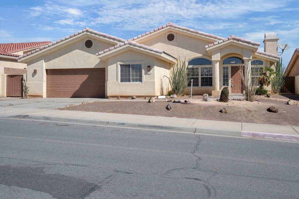 Stunning Palm Desert home ideally located near freeways, schools, shopping centers, and renowned golf courses! This single-level gem boasts an open floor plan with soaring high ceilings, a spacious living room with a cozy fireplace, a dining area perfect for entertaining, and a welcoming family room. The home features 4 generously sized bedrooms and 2 bathrooms. The chef’s kitchen is a dream with plenty of space, an abundance of cabinets, breakfast bar, lots of counter space and open to the family room with view of the pool. Indoor separate room for full size washer and dryer with access to a 2-car garage with cabinets. Large backyard with a refreshing pool, a relaxing spa, a covered patio for shade which is great for outdoor gatherings. Freshly painted, fresh stain on some cabinets, some new window coverings and ready for move in! Can be a full time home or a vacation get away! Check out price per square foot!! Don't miss this home with tons of potential and a great lot!