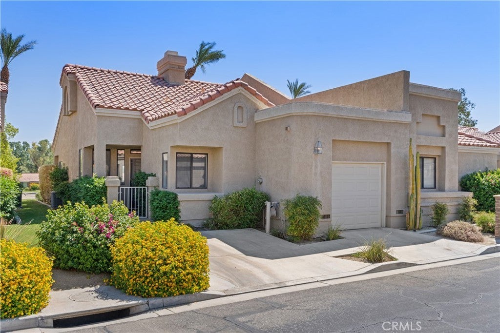 Live Auction! Bidding to start from $300,000! Welcome to Palm Desert Resort Country Club living at its finest! This beautifully updated Augusta floor plan offers 2 spacious primary suites, 2 bathrooms, and 1,091 sq. ft. of light-filled living space—all delivered turnkey furnished. Perfectly positioned on the third green of the Championship golf course, you’ll enjoy breathtaking mountain and fairway views from your private patio.Step inside to discover a bright, open layout with vaulted ceilings, a cozy fireplace, and a dining area that flows effortlessly to the outdoors. The kitchen shines with freshly painted cabinets, updated countertops, and new lighting, while the main suite boasts a newly tiled shower and dual sinks.Just steps to the nearest pool and spa, and walking distance to the clubhouse, café, and 28 pickleball courts. The gated community also offers tennis courts, bocce ball, multiple pools, and vibrant social events. Convenient to the Indian Wells Tennis Gardens, El Paseo shopping, Coachella, and all that Palm Springs has to offer. Short-term rentals are allowed, making this an excellent investment or vacation getaway.