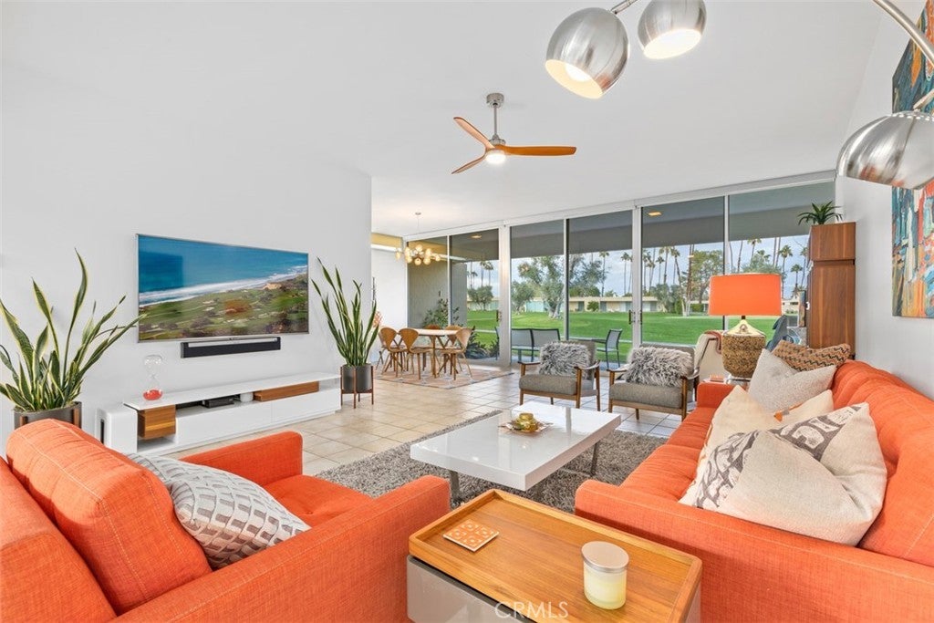 This light-filled midcentury modern home, with owned solar, is located on the best street in Seven Lakes Golf & Country Club with the most spectacular views of the Santa Rosa and San Jacinto Mountains in all of Palm Springs. The home is located on the 15th hole of the Ted Robinson executive golf course with an extra wide fairway and true mountain panoramas from every room. It has been styled to reflect modern living and capture the outstanding views of snow peaked mountain tops and Bob Hope's house. Designed in 1969 by Palm Springs architect Richard Harrison, this Mid-century Modern two bed, two bath home is located in the Seven Lakes Country Club Community known as ''The Gem of the Desert.'' Truly designed for year-round outdoor living, the north & south walls of glass open to extend your living space. The private courtyard offers beautiful views of the mountains and a BBQ perfect for entertaining. Designed in true Palm Springs style, the home boasts ten-foot ceilings, tile flooring, walls of glass, skylights and clerestory windows. Built between 1964 and 1972, Seven Lakes Golf & Country Club is the only private, guarded and gated mid-century modern community in South Palm. The community provides breathtaking views over a Ted Robinson designed 18-hole executive golf course enhanced by mid-century modern architecture designed by Richard Harrison and William Cody. Amenities include a 24-hour attended-gate, an 18-hole par 58 golf course that is 2,712 yards long, a club house complete with a restaurant and lively bar, 15 community heated swimming pools and spas, 11 BBQ areas, full sized tennis and pickleball court, shuffleboard, golf/pro shop, and electric car charging stations. Seven Lakes CC is a very low-density community with over 30% percent of the area being “green space.” Just steps away from The Parker Hotel, a 5 minute drive to several grocery stores and restaurants, and a 10 minute drive to downtown Palm Springs. Designed in 1963 by Ted Robinson, the Executive golf course is suited for all types of players, from beginners to the most experienced golfers. Limited membership means you’ll rarely, if ever, have to wait for a tee time. No matter how you choose to participate at Seven Lakes, you will be on the same course that PGA Hall of Fame Johnny Revolta lived and played, and where President Eisenhower shot his famous hole in one.