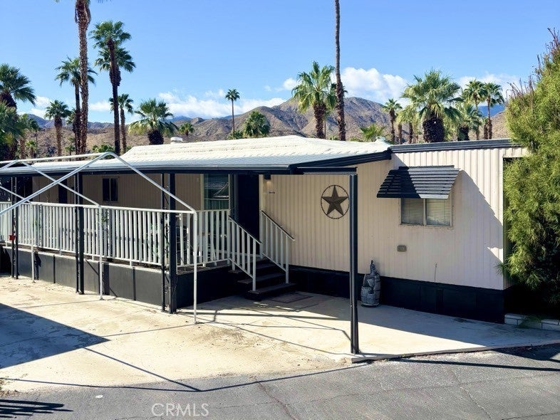 Welcome to TRAMVIEW Mobile Home Park! This turnkey furnished (with a few exceptions) 2-bedroom, 1-bath home offers comfort, space, and convenience in a desirable Palm Springs location. Step inside to a spacious floor plan featuring raised ceilings in the living area, creating an open and airy feel. The eat-in kitchen offers abundant storage and comes equipped with an oven/range, refrigerator, dishwasher, and microwave. The living room opens directly onto a large covered patio, perfect for relaxing or entertaining. The second bedroom, currently used as an office/storage area, includes a stackable laundry unit for added convenience. The bathroom features a tub/shower combo and plenty of space. The primary bedroom boasts a wall of closets and large windows that fill the room with natural light. Recent updates include a newer foam roof (approximately 4 years old), newer HVAC system, and a newer swamp cooler. Residents of Tramview Mobile Home Park enjoy access to a large swimming pool and spa, a clubhouse with entertainment areas, two kitchens, a piano, pool table, and card tables for owner use. Ideally located near Target, Trader Joe’s, and just a short drive from Palm Springs International Airport and downtown Palm Springs.