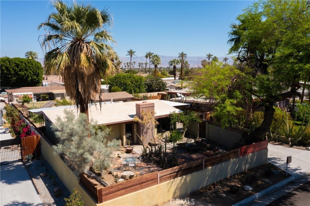 Exceptional opportunity to own in Palma Village, right in the heart of Palm Desert! This charming and stylish mid-century home has countless enjoyable and useful features. It boasts a serene private front facing courtyard with shaded trees that keep the home cool, native drought-tolerant plants and an equally relaxing space in the back, with 8 raised irrigated garden beds and a shaded hammock area. Perfectly situated near College of the Desert, you are minutes from beautiful hiking and mountain bike trails, top rated golf courses, and most importantly, walking distance to El Paseo, the renowned shopping, dining and art district, often called the "Rodeo Drive of the Desert". Not only is this home centrally located, it has plenty of space for expansion with a 7400 ft.²+ lot. It is also R2 zoned, which allows for a secondary residential unit with the City of Palm Desert. Generate additional income, take full advantage of the tax benefits and deductions available, while capitalizing on the high demand for short term rentals for Coachella/Stagecoach or the usual snowbirds looking for a beautiful spring desert escape. The 200 square-foot finished garage could be easily converted into a casita with separate access for short- or long-term rentals, as long as the owner resides in the primary residence. Aside from central air, both the home (and the garage) has evaporative coolers to help save on energy costs during the hot summer months