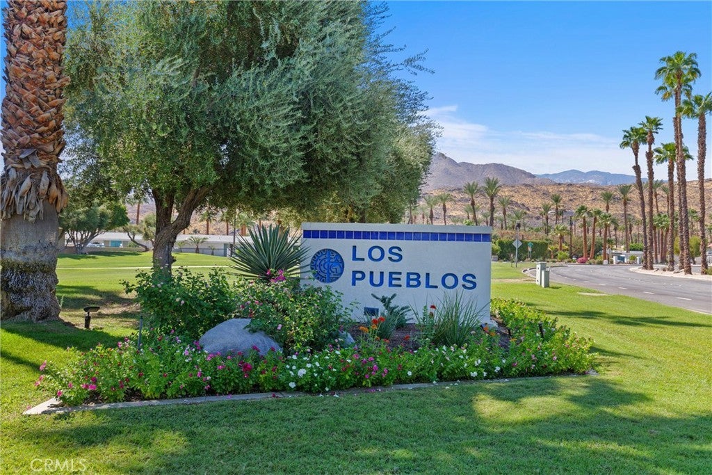 Welcome to your Desert Oasis, this Exquisite Townhome is in the Los Pueblos Community, Located along the Prestigious Tahquitz Creek Golf Course. Nestled in South Palm Springs on Fee Land (you own the land), it is surrounded by Beautifully Lush landscaped Grounds, Breathtaking Mountain Views that Set the Stage for Relaxation and Outdoor Living. This Stylish, 3 BR & 2.5 Baths with 1385 SF of living space, Features Numerous Upgrades throughout, Designed for both Comfort and Style. the Spacious layout, combined with Modern Finishes provides the Ideal Backdrop for Entertaining and Enjoying Peaceful Retreats. Step inside to Dramatic Vaulted Beamed Ceilings and Windows throughout that Flood the Interior with with Natural Light, with a View of the Patio, Lagoon and Palm Trees. The recent Upgrades include Vinyl laminate Flooring, Interior paint, Smoothed Ceilings, Air conditioning & Heating, Washer & Dryer and Water Heater Downstairs offers a Large Living Room w/Fireplace, Dining Room with a Wet & Dry Bar, Kitchen, Bedroom and 1/2 Bath. Upstairs you have the Very Spacious Primary Bedroom with an Ensuite Bathroom and Balcony with View, a Guest Bedroom and additional Bathroom. The Sliding patio door off the dining area leads to an Inviting Patio, perfectly positioned over a Tranquil Lagoon with the Soothing of a Waterfall and Views of the Greenbelt and Golf Course....all of this Enhances the Ambiance of you Personal Oasis. Whether you're a Golf Enthusiast, or simply seeking the perfect Palm Springs Lifestyle, this Townhome offers unparalleled Charm and Tranquility. Located within 5 miles of the recently built Agua Caliente Casino and minutes to Downtown Palm Springs, you'll enjoy Easy Access to Top Tier Dining, Shopping & Entertainment. The Los Pueblos HOA includes Paid Water and Trash, Beautiful Pools, Spas, Koi Pond & Tennis Courts. The Perfect Investment as a Primary Home, Vacation Home or use as a Short Term Rental (allowed by the HOA). This Home is being Furnished (with some exclusions), so just Move right in and begin Enjoying all that the Palm Springs Desert Life has to offer.